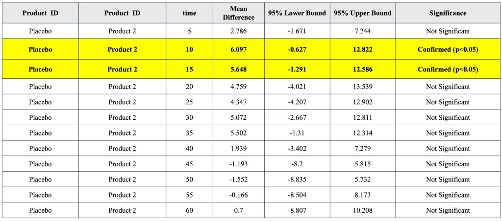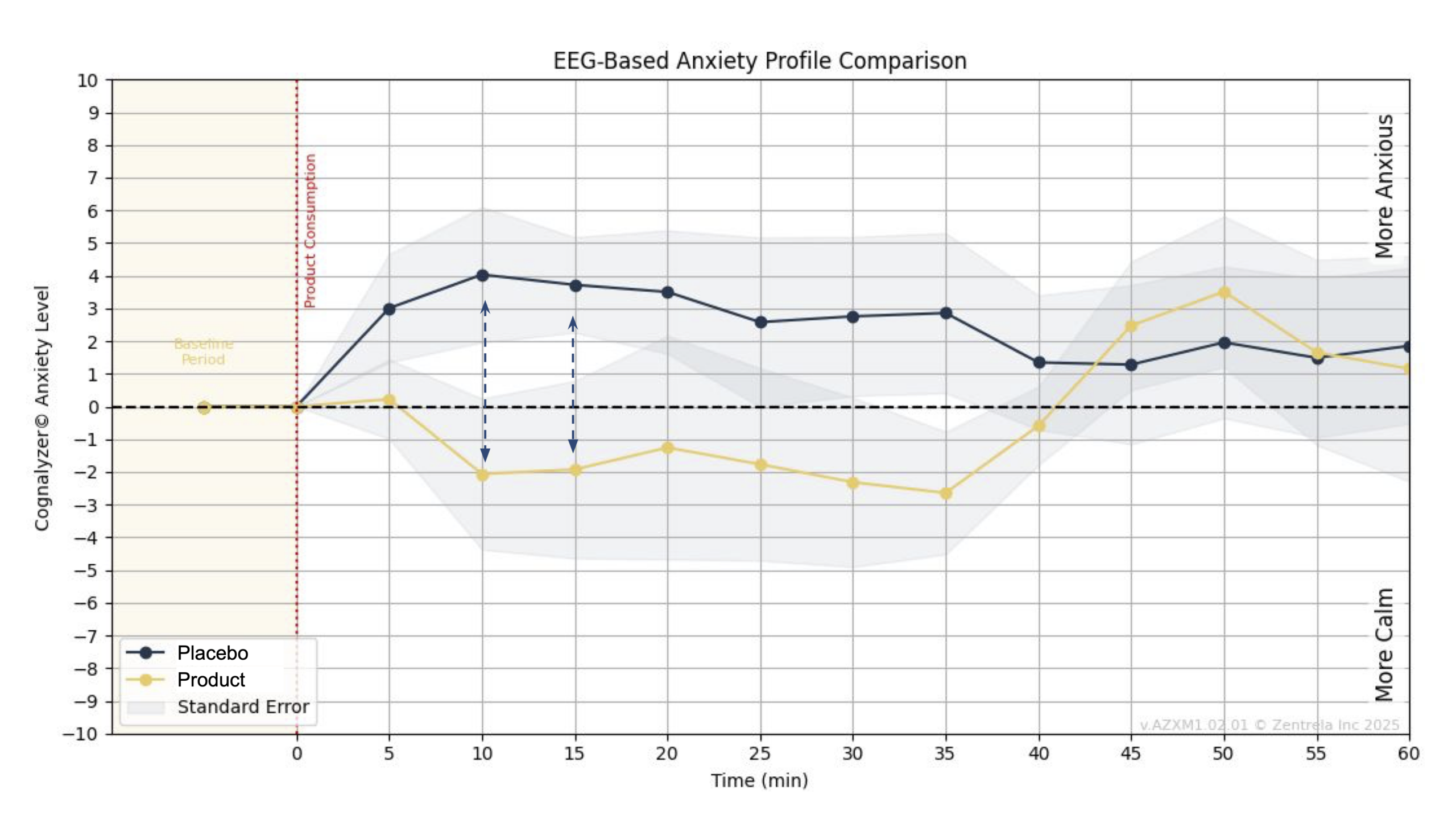 Through IRB-approved, standardized, randomized, crossover, placebo-controlled proprietary EEG protocols, we quantitatively assess the efficacy of multiple products, enabling reliable identification of top-performing formulations and solid benchmarking against comparators.