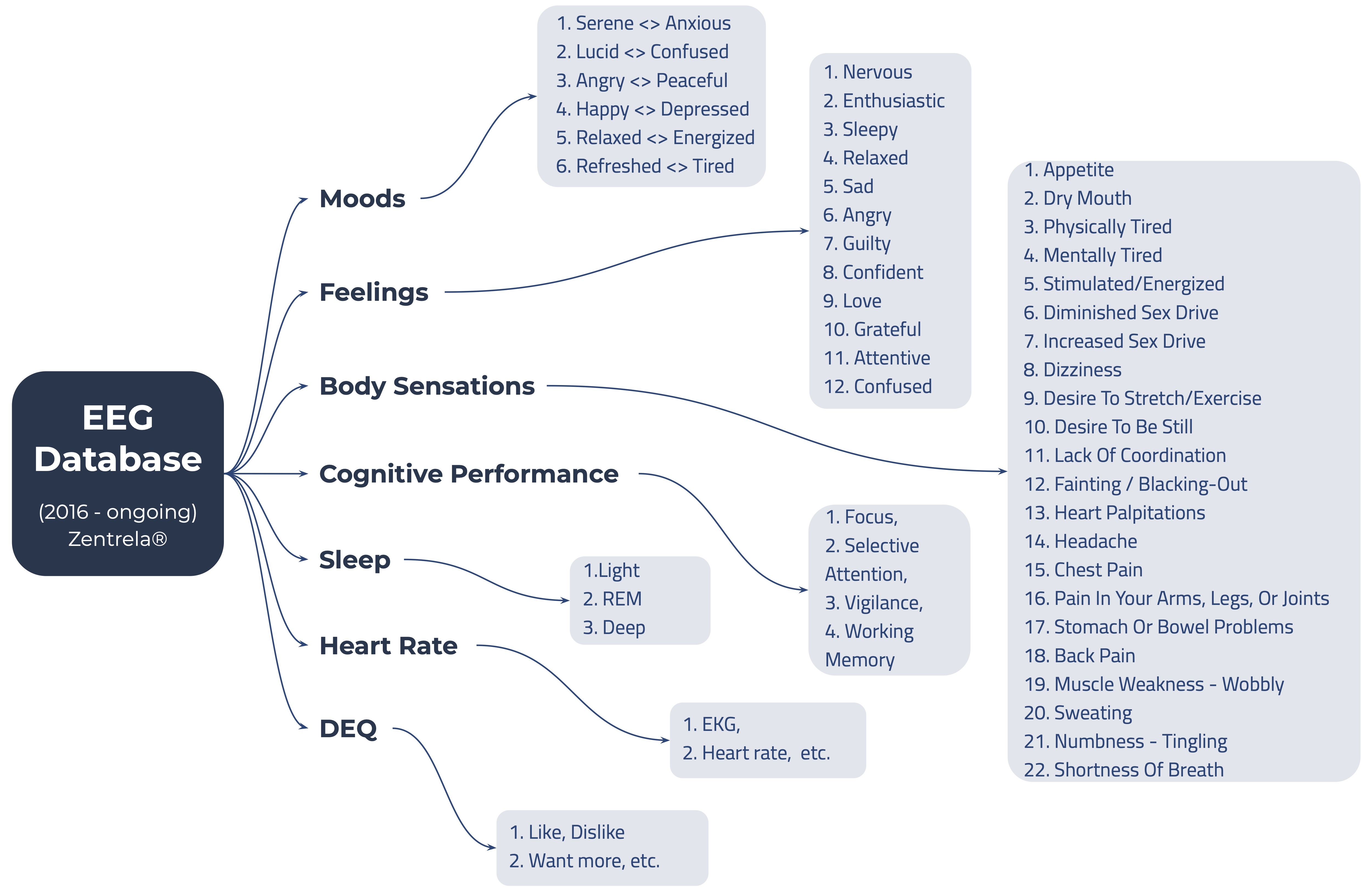 Funded by the Ontario government (Ontario Brain Institute and Ontario Centre of Innovation) since 2016, Zentrela has been conducting large IRB-approved human trials to map the brain (EEG) under many mental states with the end goal of creating artificial intelligence that objectifies, standardizes and democratizes EEG analysis for multiple research purposes in non-medical settings.